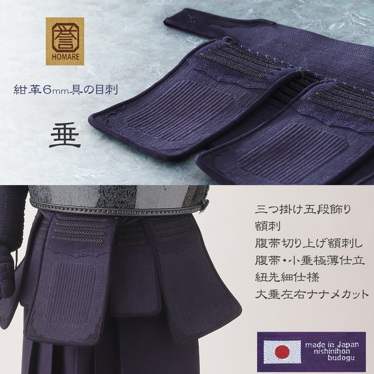 【受注生産】垂単品 誉 -HOMARE- 紺革 6mm 具の目刺し