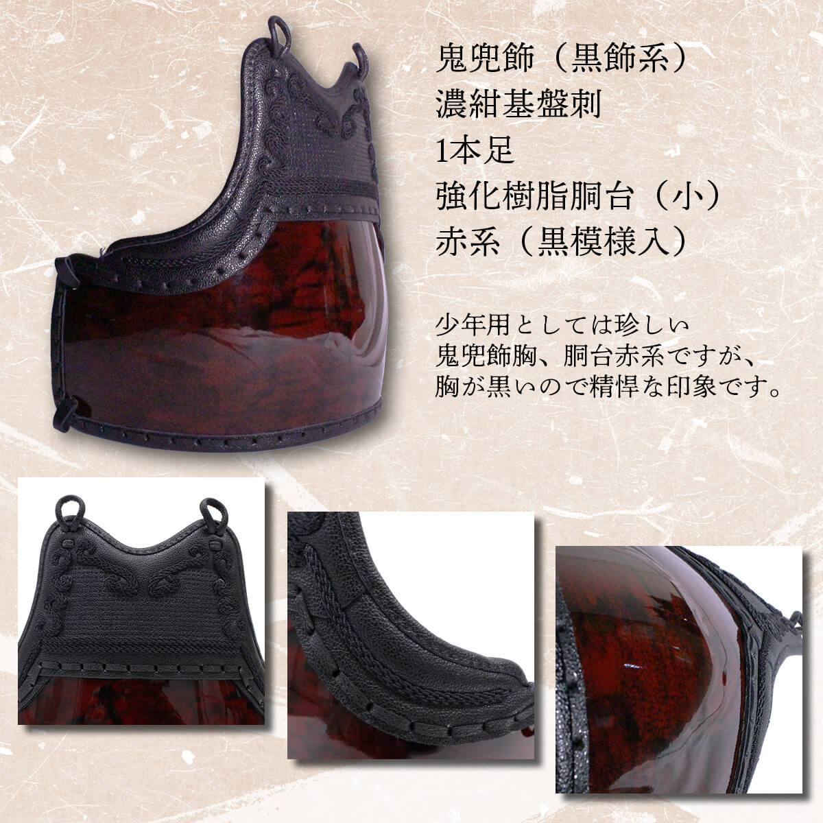 ![【 アウトレット 】カラー胴 濃紺基盤刺 鬼兜飾 強化樹脂胴台 赤系 [Sサイズ]](http://www.kendo.co.jp/cdn/shop/files/ou-kd-rb-s-2.jpg?v=1693879789&width=1445)